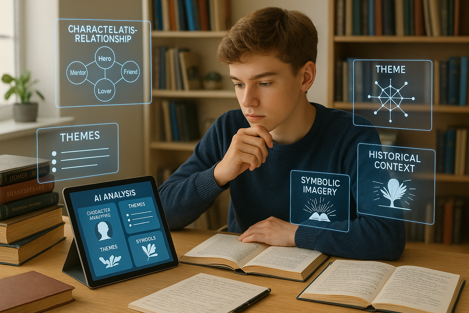 AI pomaga w streszczeniach, motywach, symbolice i kontekście historycznym. Zobacz, jak mądrze wykorzystać AI do analizy lektur – bez ściągania.
